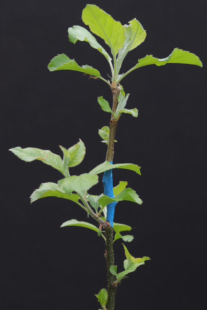 All three are now making new growth from the scions. So far this is only about two inches on the terminal bud but it certainly looks like they’ve taken. I shall leave the ties on for now and wait until the shoots are around six inches long before removing them. There were shoots growing from the rootstock and I have removed those.