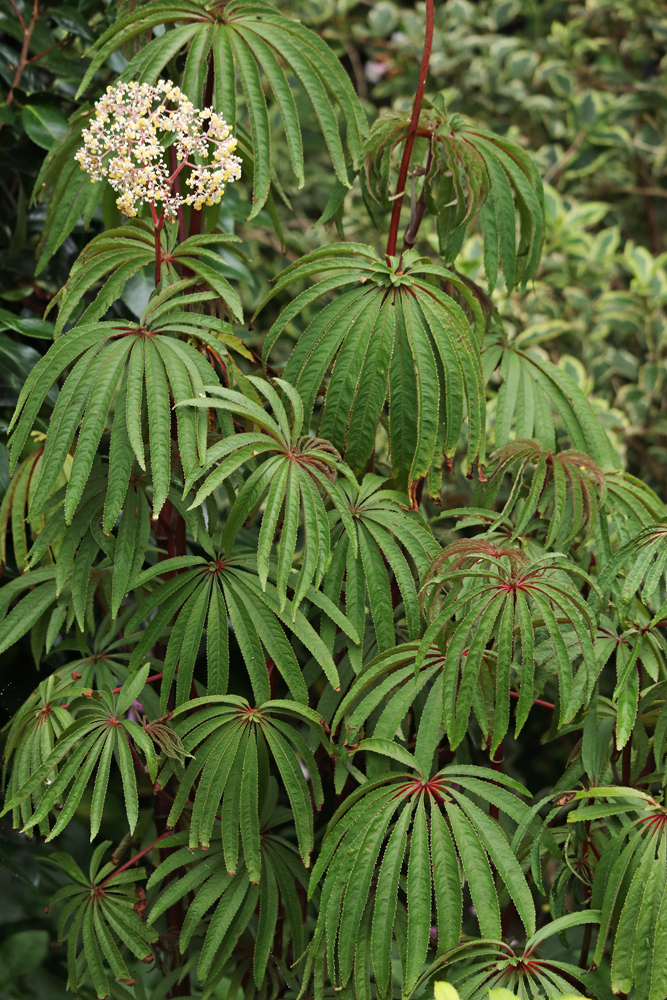 Begonia luxurians. I’d have sworn I’d done this recently but it’s been a year. This is the second year I’ve planted a couple of these Begonias out into a shady spot in the garden. They love it and perform so much better than being in a pot. This one is around four feet tall and flowering, not that the blooms add anything useful to the overall effect. They will get lifted and brought under cover for the winter, but not yet.