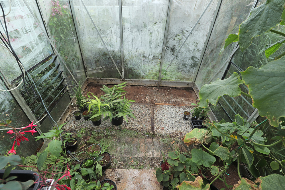 The half finished glasshouse in 2013. I filled in the pond after building it, I like to make things difficult. I take comfort from the fact it’s still standing after seven years, in a very windy spot where the wind whistles round the corner of the house.