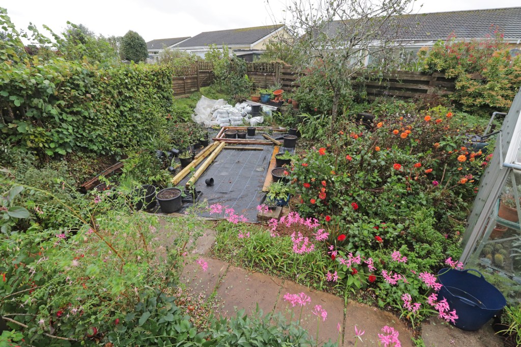 The pile of plastic is the tunnel sheet, the old doors and numerous bags of sand from my defunct propagation unit. Just behind it is a Magnolia and on the bank behind that, a Camellia. The dahlia patch has performed badly this year and is in the mix too. The paved path in the foreground has Nerines down both sides which have mostly been terrible this year so they’re included. Even the plum tree at the back may find it’s not as indispensible as it thinks it is, it’s not in the best of health.