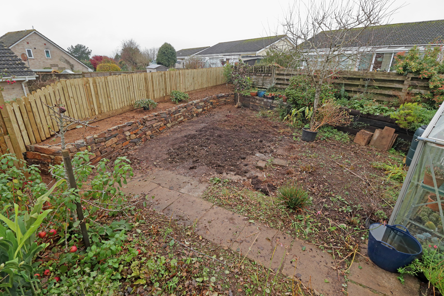 Three weeks ago I had completed the stonework to face my side of the bank between us and our neighbours. The bank however, is only 70cm high on our side so provided no privacy now that the hedge on top had been removed. Last year the next neighbour along had replaced the bank between us and them with a fence. (See “The Fence”) In both cases there is about a 60cm drop from our side of the boundary to theirs, so they first had to construct a retaining wall, then build the fence on top of it. They engaged landscapers to carry out the work and we agreed to split the cost 50:50.