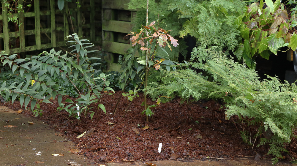 The Rhodochiton is still going strong isn’t it? I hope the frosts spare it a little longer. The shredded leaves seem to make a very tidy looking mulch for the fern corner.