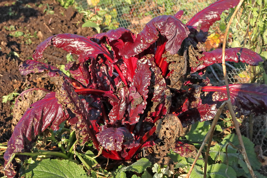 Chard. I have grown Chard a couple of times and it hasn’t done very well. This plant may be self sown, except I’m not sure where the seed would have come from. Suffice it to say I don’t think I planted it but it has done very well and yielded a few small portions for the kitchen. Unfortunately it’s all alone and one plant isn’t really enough. I thought I’d leave it to go to seed but it may need another plant for pollination.