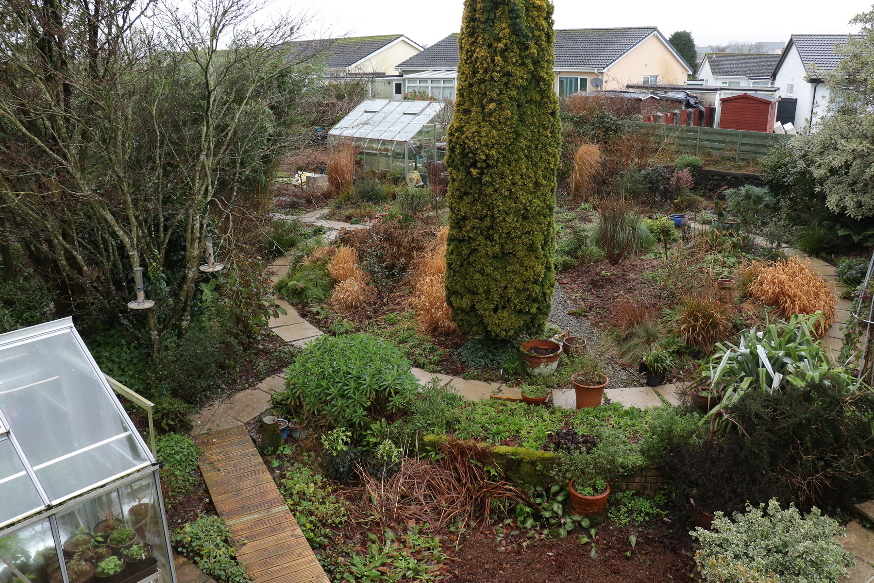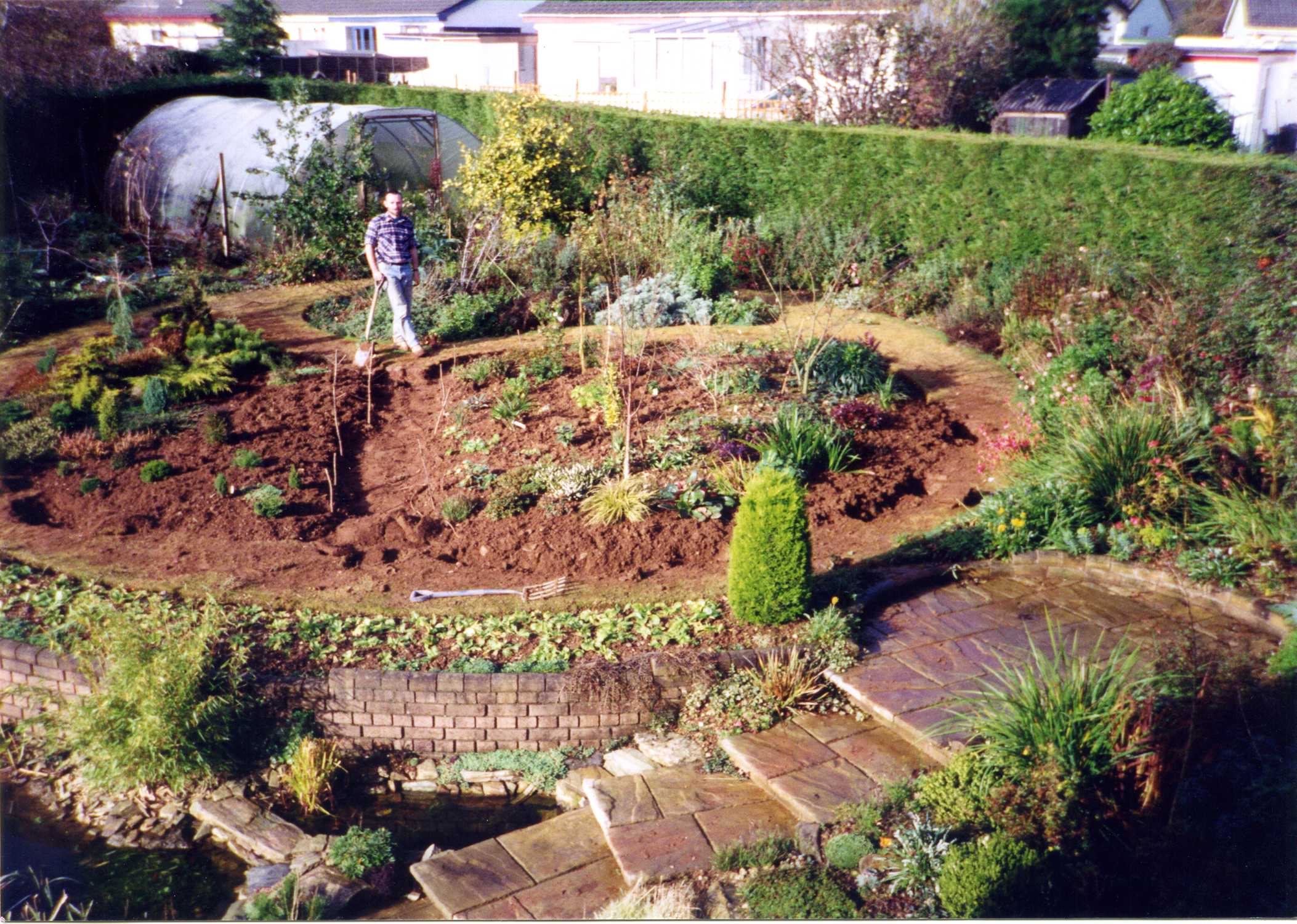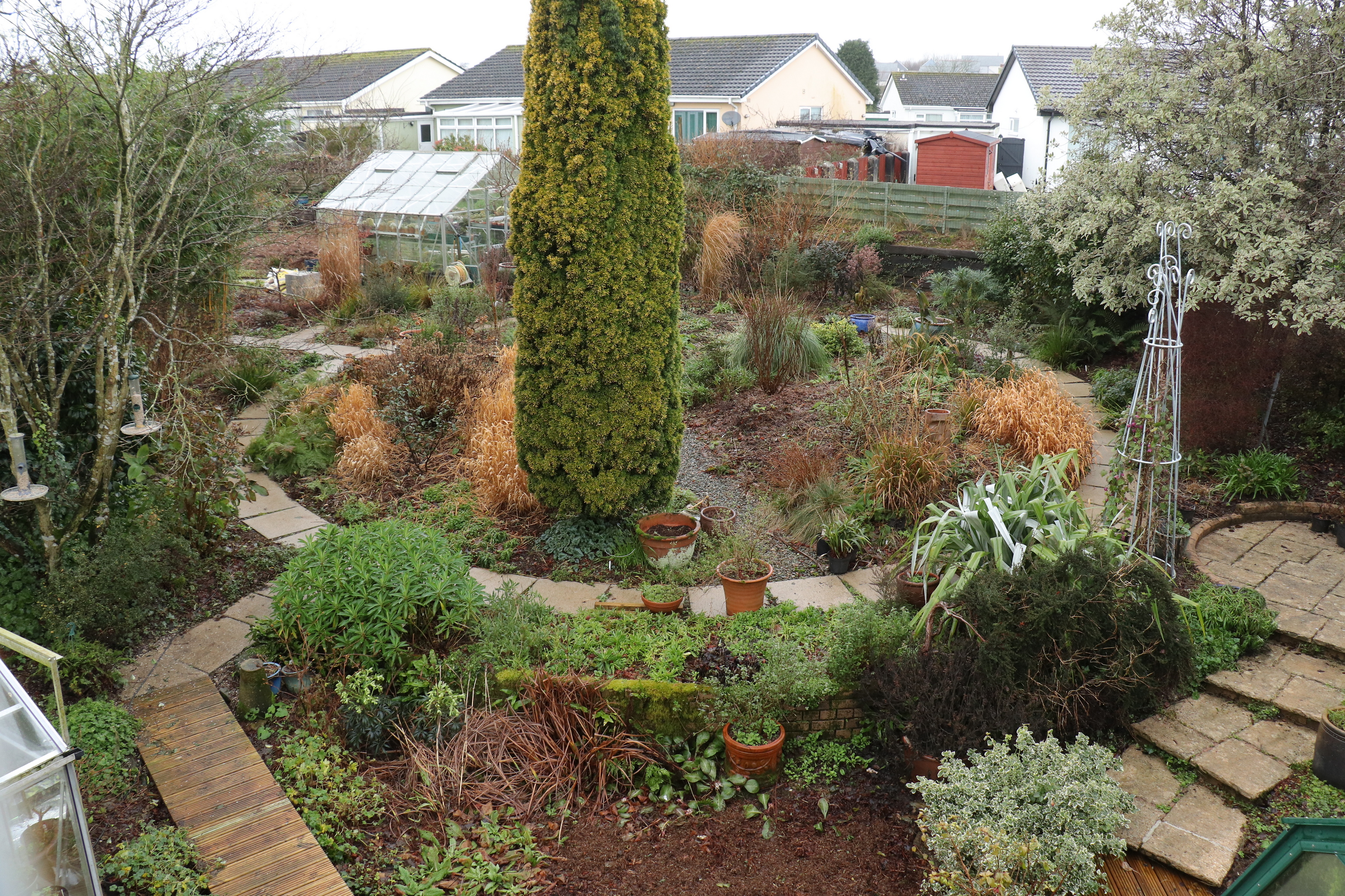 When the house was built, around 45 years ago, it was on farmland and the garden was more or less untouched field. I moved in around 32 years ago and there were still docks and thistles germinating in large numbers every year from the seedbank in the soil. Some landscaping had been done by an earlier occupant and they had created a circular lawn with a flower bed around it, planted some trees and planted a leylandii hedge.
