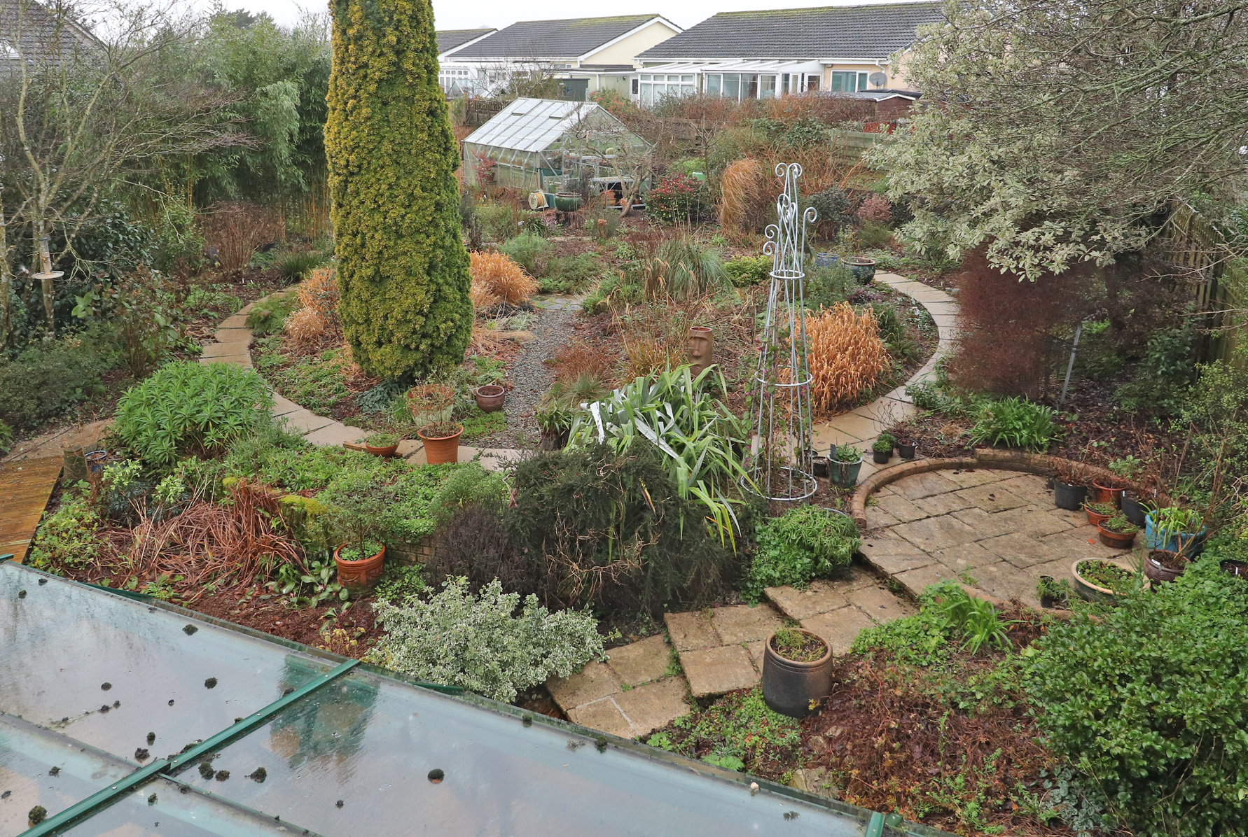 A polytunnel has gone in and the area of grass is shrinking. The leylandii hedge was still there and a horror to cut twice a year. I’ve looked carefully at the picture and can find nothing that is still here, though there are a couple of plants that may have been there but are hidden from view.