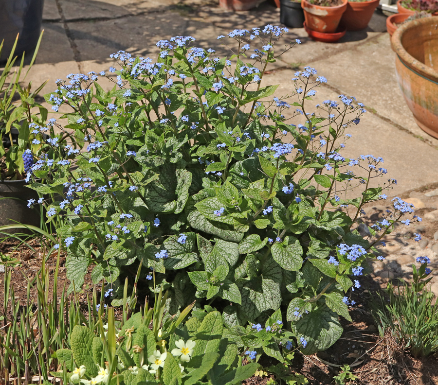 Brunnera ‘Jack Frost’ is a very good plant if growing well and I have it in a couple of places. It also seeds about a little. This plant is one such seedling and what it has lost in silvered leaves it is more than making up for in robustness and flowering.