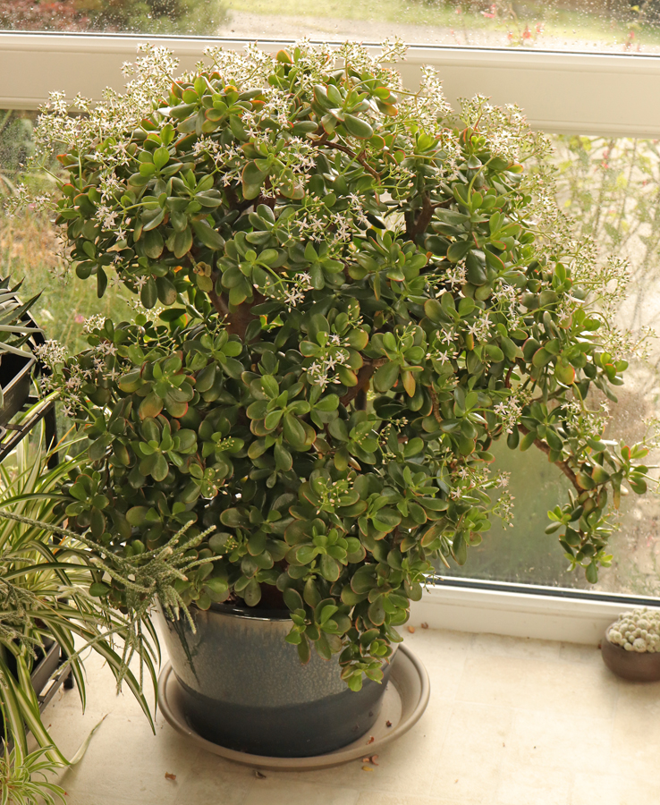 1. That is a nice jade plant for inside what seems to be an enclosed porch. I tried to grow some as houseplants over the years, but they all eventually stretch, and get put back out. Were I lived in town, houseplants were nice, because the ground was so far below the windows. I suppose that if I really wanted to, I could have cycled a few inside and outside, to replace a stretched specimen with a fresh specimen every so often. They made a nice low and dense hedge outside.