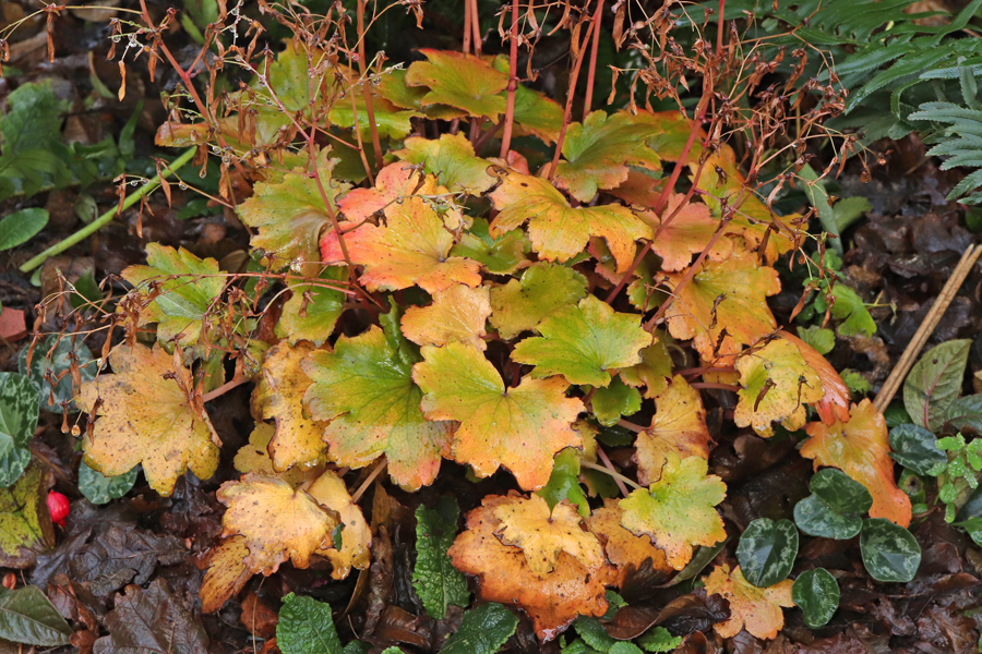 Saxifraga fortunei ‘Sybil Trelawney’. This featured in flower in mid October and it has produced an unexpected encore with a splash of colour in December.
