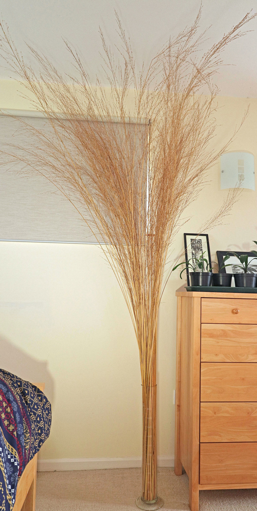 Not entering into the spirit of things was my tall Molinia ‘Transparent’, which started to collapse even before the gales of last weekend. I cut all the stems at the base and put them in a glass measuring cylinder I have. Another missed opportunity to join in the ‘in a vase on a monday’ meme. Finding anywhere suitably uncluttered for a photo proved impossible but you get the idea. Just short of eight feet.