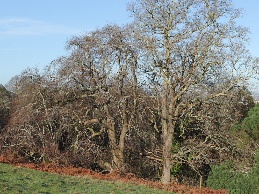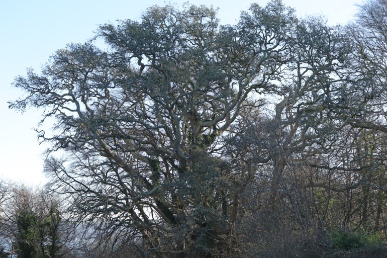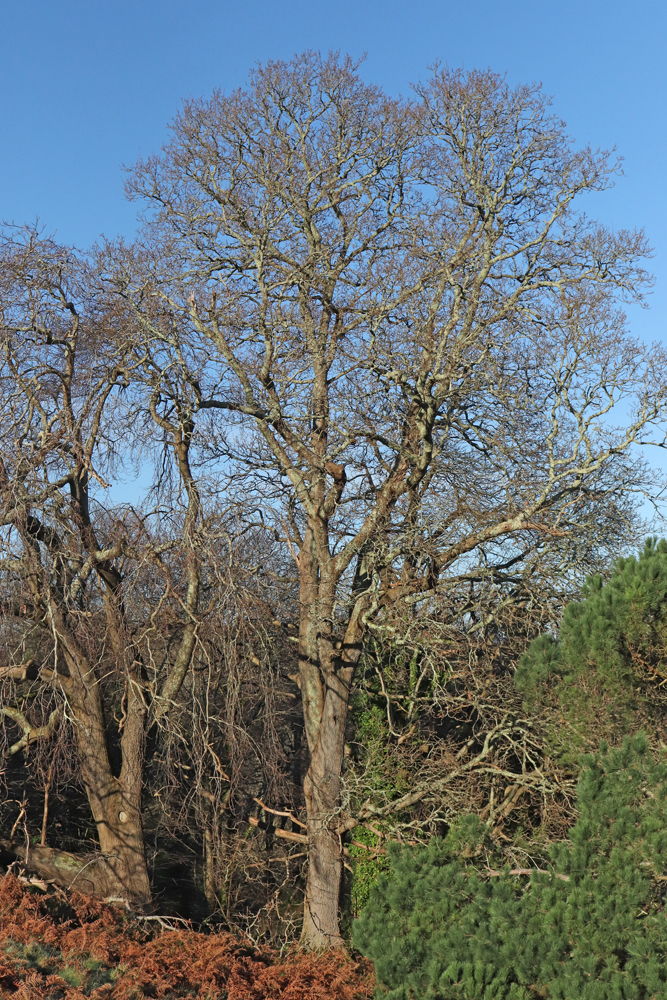 Another oak, Quercus suber, the cork oak. I don’t know if this is the UK champion, I’ve not seen a bigger one anywhere. It’s getting a bit hemmed in by seedling trees, probably sycamore, perhaps I’ll have a word with someone.