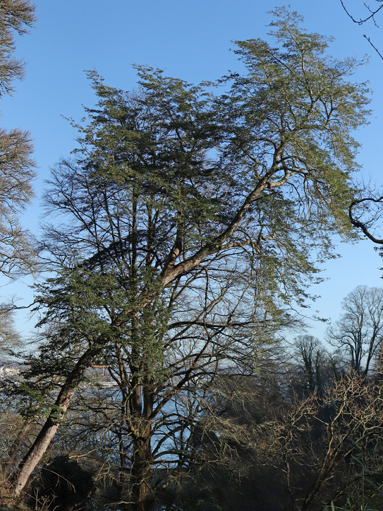 Oh, I’ve more items than I thought. Another ill matched pair then. Redwoods. Both are here and unusually for UK gardens, it is the coast redwood, Sequoia sempervirens, that has made the bigger tree, not that there’s much in it. It’s lost its top too, so the giant redwoods will probably outgrow their cousins in years to come. They’re not well positioned to take photos but the Sequoia towers above everything around it, I’d guess at 130-150 feet.