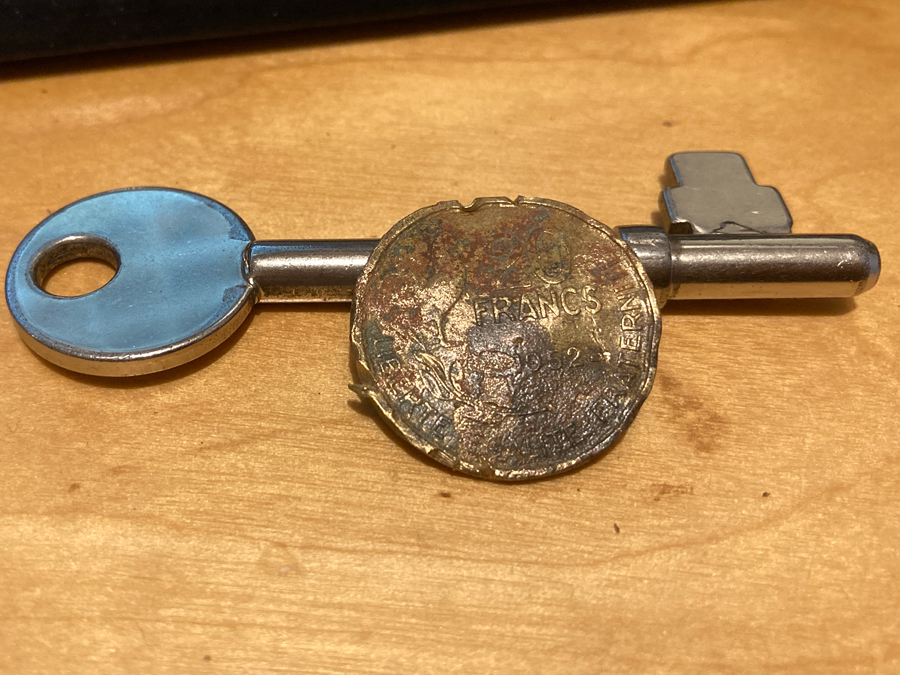 Fred tells me it’s would be almost worthless even in perfect condition; at least I didn’t mince a valuable coin into worthlessness.