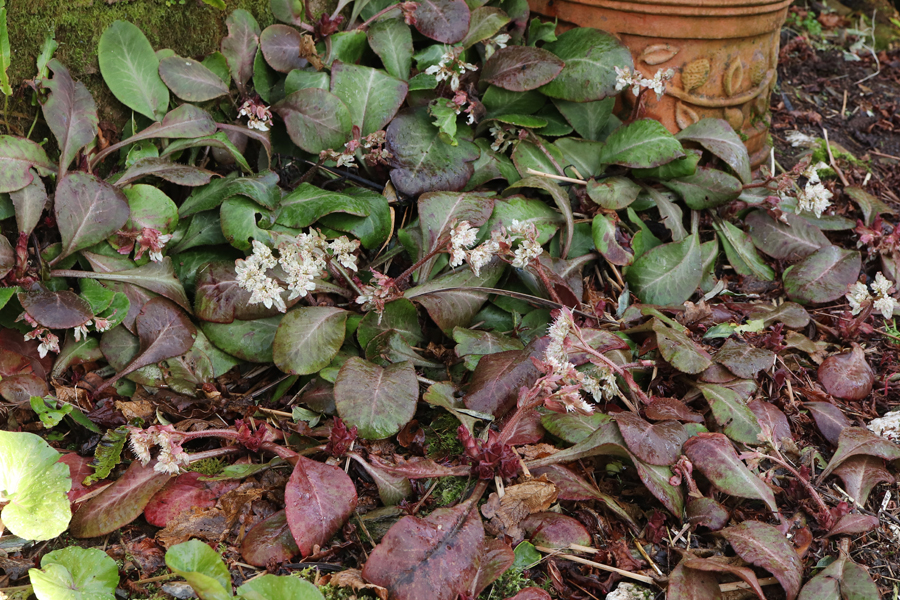 I had to stop and look up Chrysoplenium macrophyllum. hmmmm . . . What does it . . . do? It looks sort of like Bergenia crassifolia, with bloom out of season. It is available by mail order, so must be appreciated by those who are familiar with it. Is it popular because it is resilient to harsh climate?