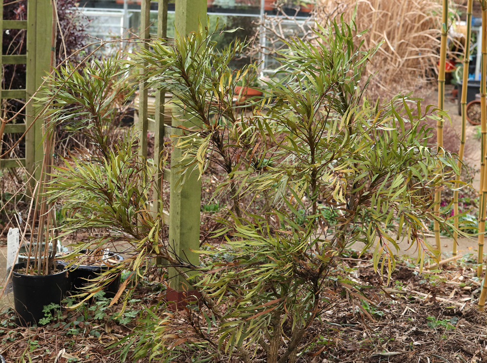 Mahonia ‘Soft Caress’. I moved this before Christmas because it seemed unhappy in full sun. It’s a lot more unhappy now. Perhaps something else was ailing it. I shall cut it hard back and see what happens.