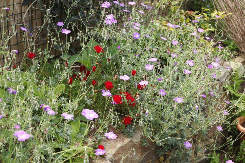 I have gone right off the most invasive pink geranium we have; it’s easy to pull out but all too often it’s already swamped something precious before I got around to it. I wouldn’t mind the white one being a little more assertive than it is.