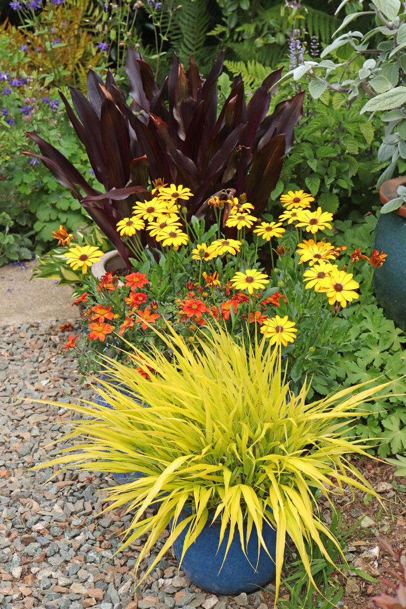 H. ‘All Gold’ is one of the brightest yellow things in the garden and a good doer. Sadly, of all the Haks I grow, it is the worst flopper, almost flat to the ground after rain. Growing it in a pot may well be the way to go.