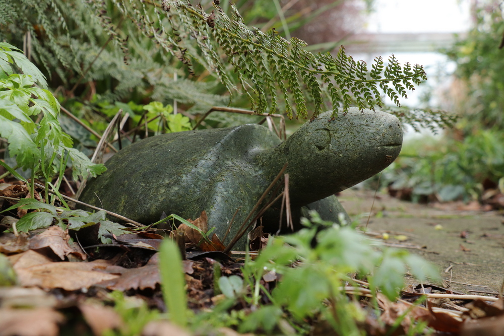 Six garden ornaments is an option closed to me as we only have two. It’s slightly surprising that Sue has never given this turtle a name. Under the patina of moss is a greenish marble type stone. It sits partly hidden beside the path, perfectly positioned to stub your toe on. I do so, regularly.