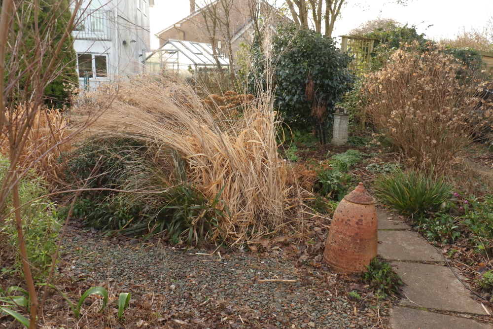 I haven’t done a WordPress before and after shot for a while, so when I decided to chop this grass down it seemed a good opportunity. I needed a clear shot of the Camellia behind it, to go in a talk I’m doing about Camellias. Molinia caerulea subsp. arundinacea ‘Transparent’ had to go. The Camellia is ‘Bob Hope’.