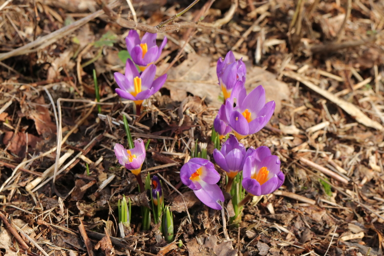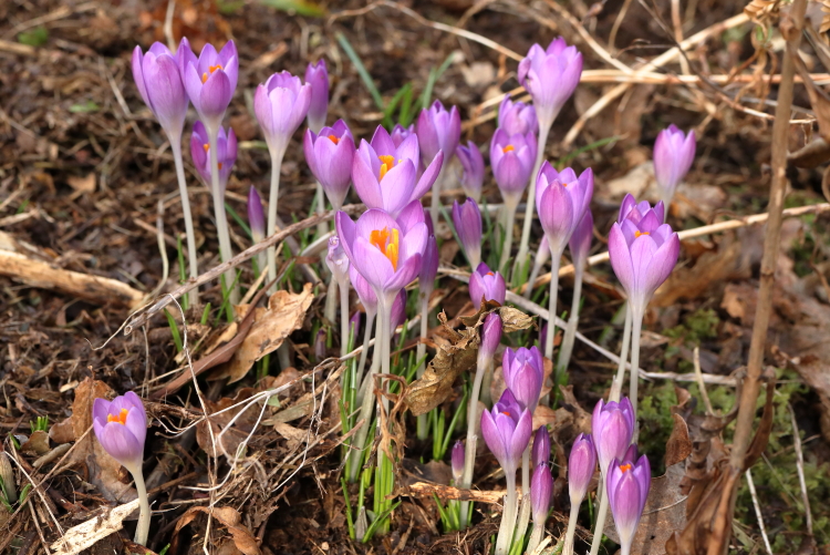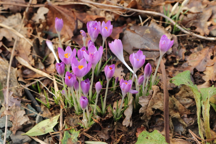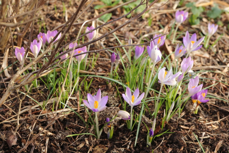 The considerable numbers of Crocus tomasinianus (mostly) that I have planted in the last few years seem to have settled in well and evaded the perils of later season planting out. They are spreading far and wide too, coming up miles away from where they were planted. I’m happy with that.