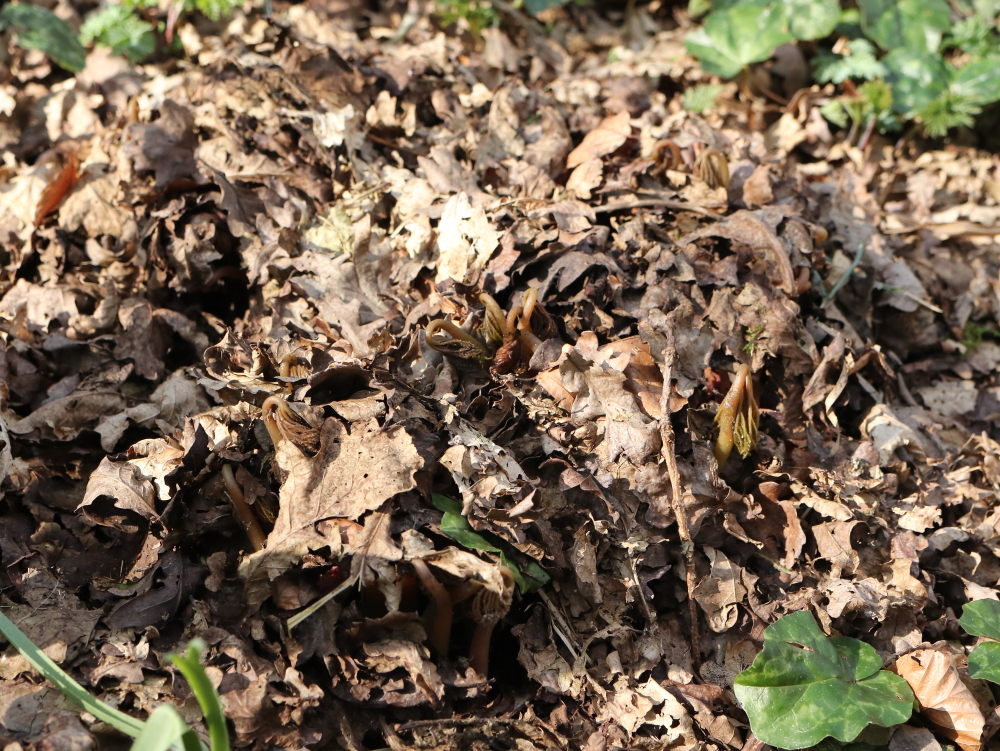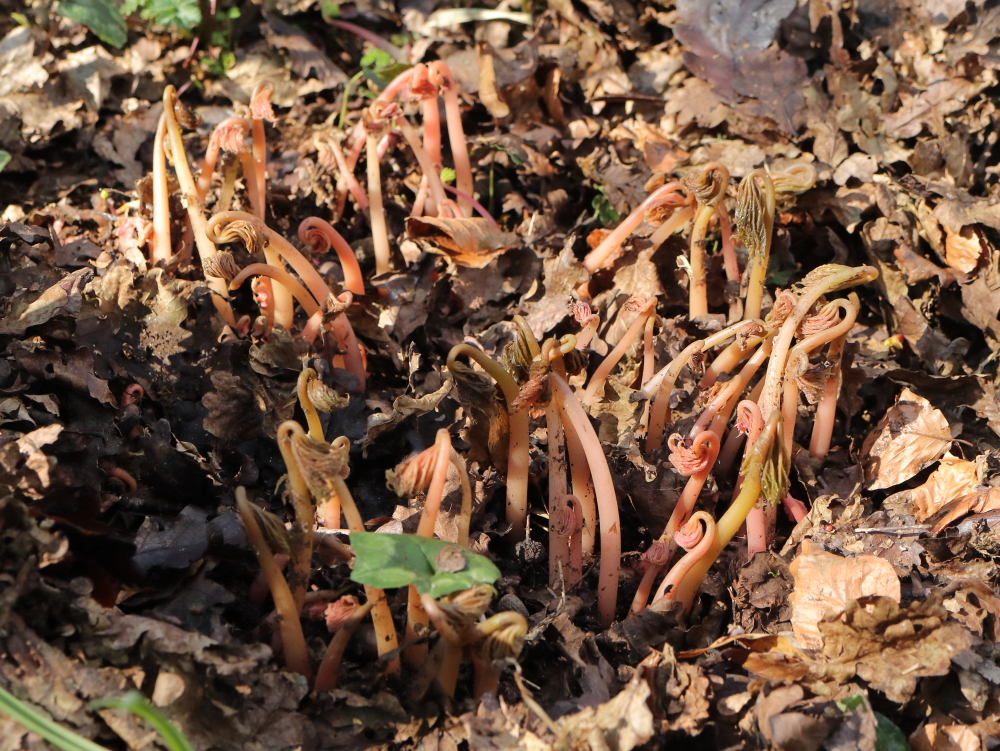 I didn’t have this to worry about this time last year, it was still in a pot and could be taken under cover when frost threatened. Lifting it in the autumn didn’t happen because by then it was three feet across, so I packed dry leaves around and over it when the first frost was forecast, then left it to take its chances. Yesterday when I was looking for SoS contenders I noticed that something was happening, cleared away the leaves, was pretty astonished at what I found and how well a pile of leaves had protected it, let it breath for a few hours then put the leaves back with an upturned pot to hold them in place as frost is again forecast for tonight. Begonia pedatifida ‘Apalala’, which I mentioned in this six from December last year.