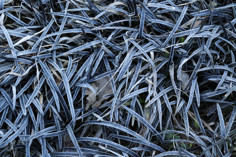 By way of killing two birds with one stone, Ophiopogon planiscapus ‘Nigrescens’ has evaded inclusion in a six for five years and was sporting a comparatively rare, in Cornwall, dusting of the frosty stuff this morning. Now’s it’s chance to shine.