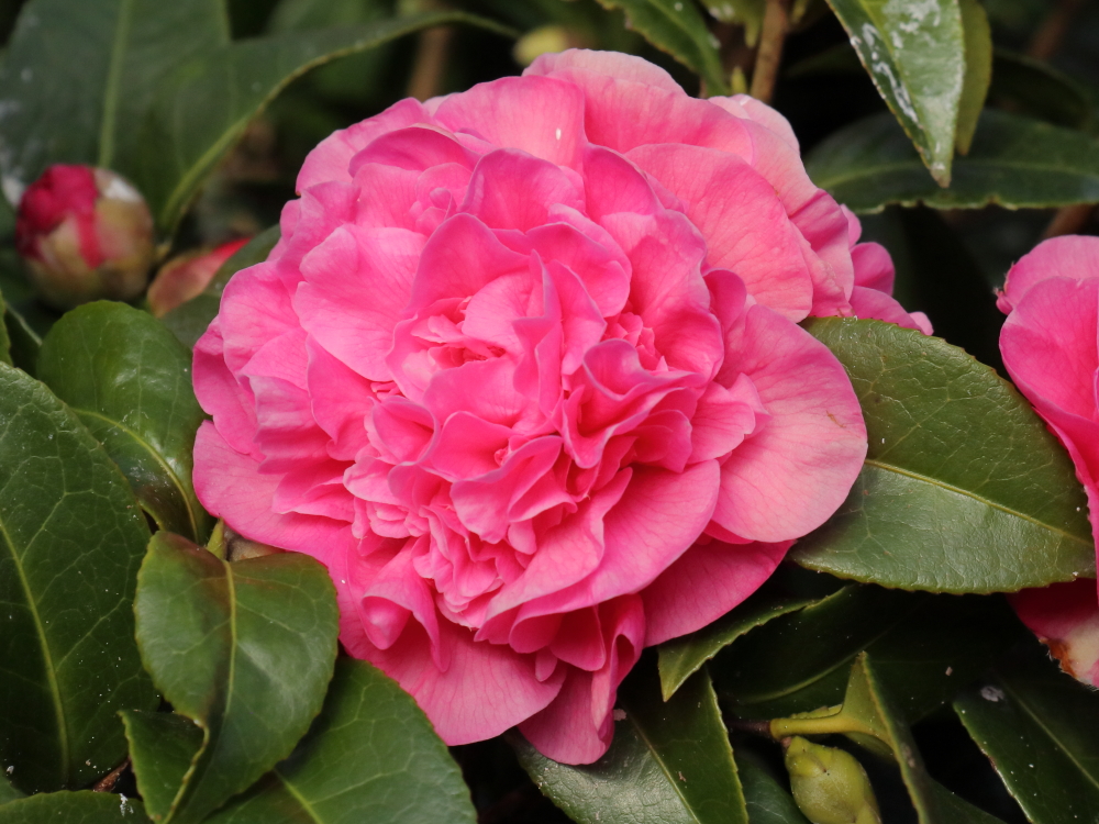 Camellia x williamsii ‘Debbie’. A lot of my time over the last couple of months has been spent taking photos of Camellias to put in the records of the National Collection held at Mount Edgcumbe. This one is in the garden, which gives me more options in terms of taking pictures at different times, in sun or shade. I can then upload them to the computer and see if I need to take the shot again. ‘Debbie’, and a few others of similar colour, never seem to look the same in a photograph as they do in life. No amount of tweaking the colour ever seems to work; I’ve come to the conclusion that my brain interprets the colour differently when its on the bush compared to when it’s in a picture. Much of how a colour appears is down to what’s around it, but it just seems to apply more forcibly with this shade of pink with it’s blue undertones.