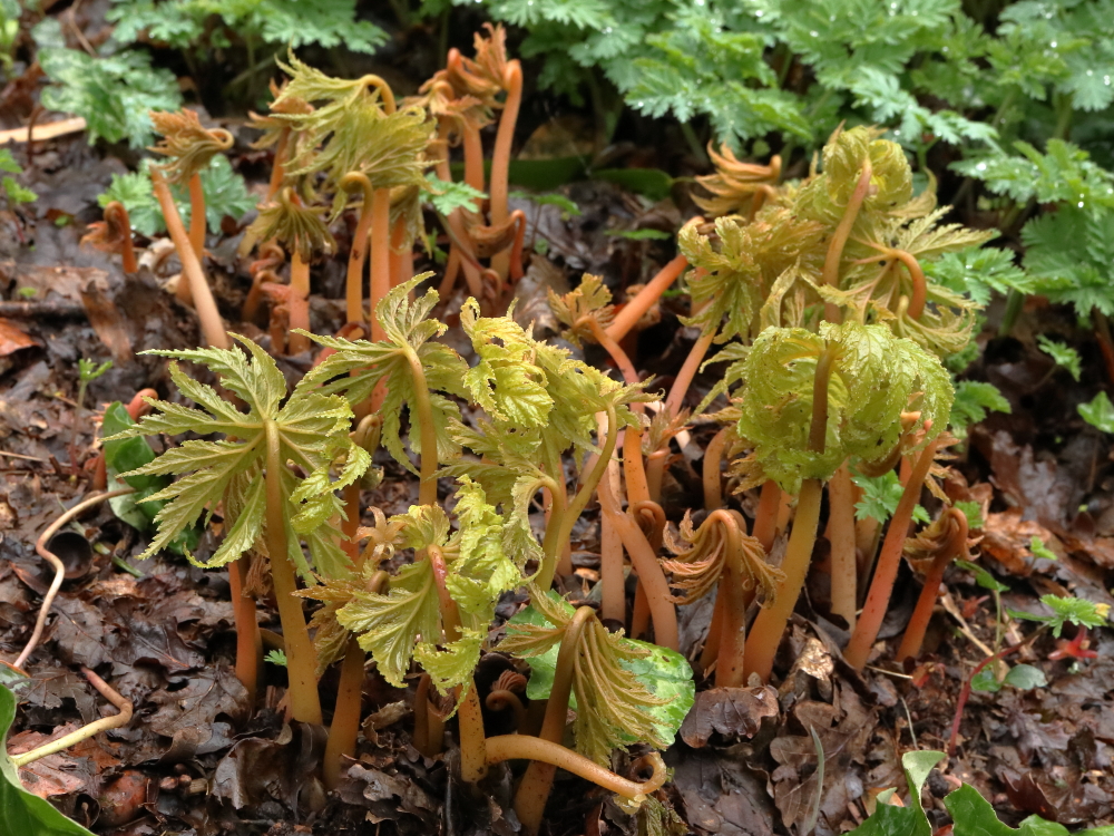 More emergent leaves to finish on. Begonia pedatifida ‘Apalala’ was in my six three weeks ago but it wasn’t clear then how much frost damage it had suffered, having pushed through its leaf covering just in time to get clobbered. Not so much, it now appears. I am getting to seriously love this plant, so much chutzpah from nothing but mid green leaves. Expect it to appear regularly in these posts.