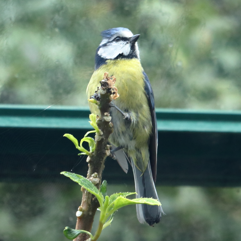 Today (Friday) it was the turn of a blue tit to do some voluntary pest control. He came into the conservatory and spent 20 minutes or so searching for, and finding, things to eat. Warmer, dryer and richer pickings than outdoors to be sure.