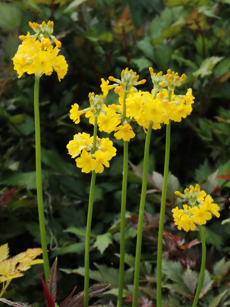 Primula prolifera. I collected a bit of seed from some plants of this in a park several years ago and have managed to keep it going since; the more pleasing for the fact that it was swamped out by Persicaria campanulata in the park. Don’t ever plant Persicaria campanulata, it is a monster. The seed of the primula usually germinates readily if sown fresh but I failed last year, either to sow it or to germinate it, so I’m pleased to see that it has survived and is flowering this year. It will get a lot taller as it adds several more whorls of flowers to each stem. The contextual picture shows it growing with Astilbes in the bog garden that used to be a pond before I filled it in.