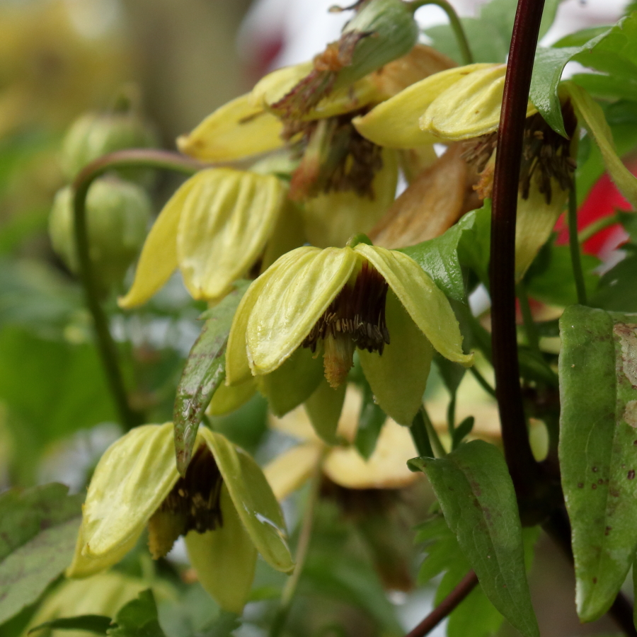 Your clematis ‘Golden Harvest’ is certainly refined and restrained, which can’t be said of the yellow thug here. As for the Actaea probably it should make a reappearance around halloween, if it is still around. Enjoy the rare plant fair, I have my local one down on the calendar.
