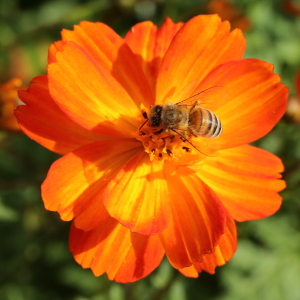 Cosmos sulphureus. A lot of what is offered under this name are short, around 30cm, whereas what I have is three times that. I don’t know what variety I have as I pinched the seeds from a display down the road. I just love them, they have that same intensity of colour as Californian poppies. I’d like to mix them in with the blue and purple Salvias but there’d need to be some pink rehousing first.