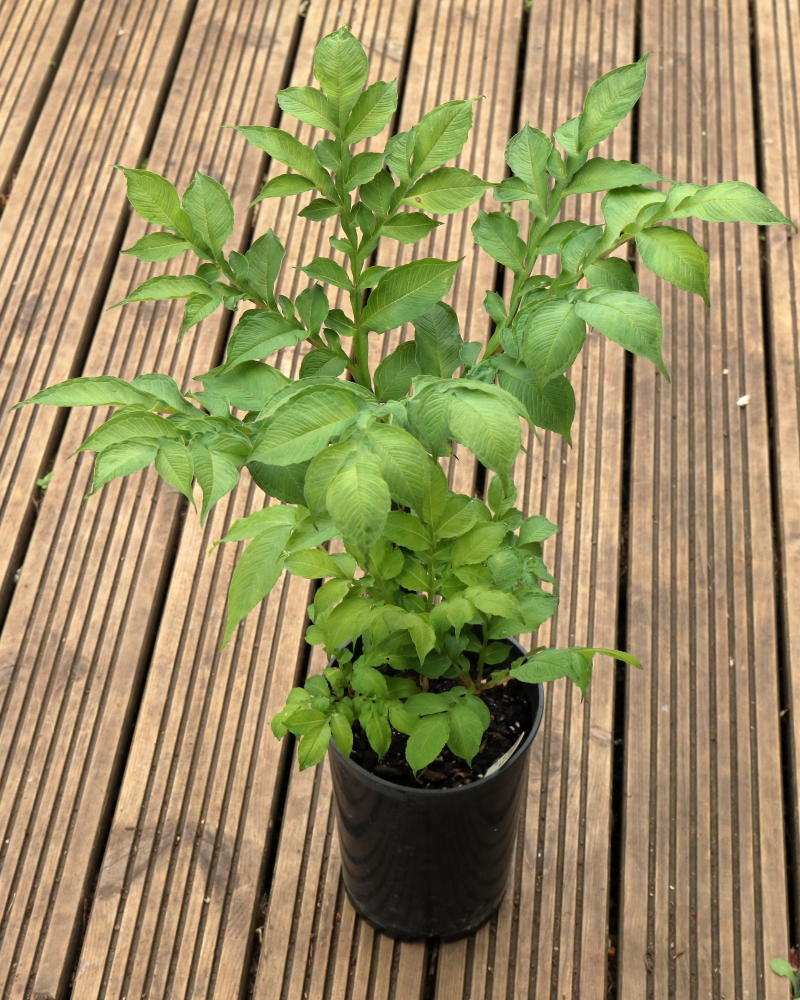 The plant I purchased at the HPS meeting was Amorphophallus konjac. Let’s just gloss over the meaning of its botanical name and the fact that if and when it flowers it will stink to high heaven. It will be perfect in my planned big foliage section next year and if it’s flowering when we’re open it will provide a talking point if nothing else. It was in a three litre pot, easily 60 cm tall and he wanted £7.50 for it. I gave him £8 and told him to keep the change.