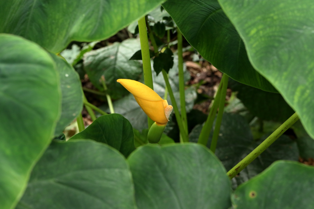 Tis the season of the garden spider, Araneus diadmatus. Do I make it number six or do I go with Colocasia gaoligongensis, which is flowering, and stick the spider as a header. Nasty shock for any arachnophobes but there surely aren’t arachnophobes amongst gardeners.