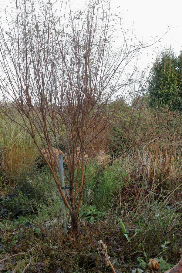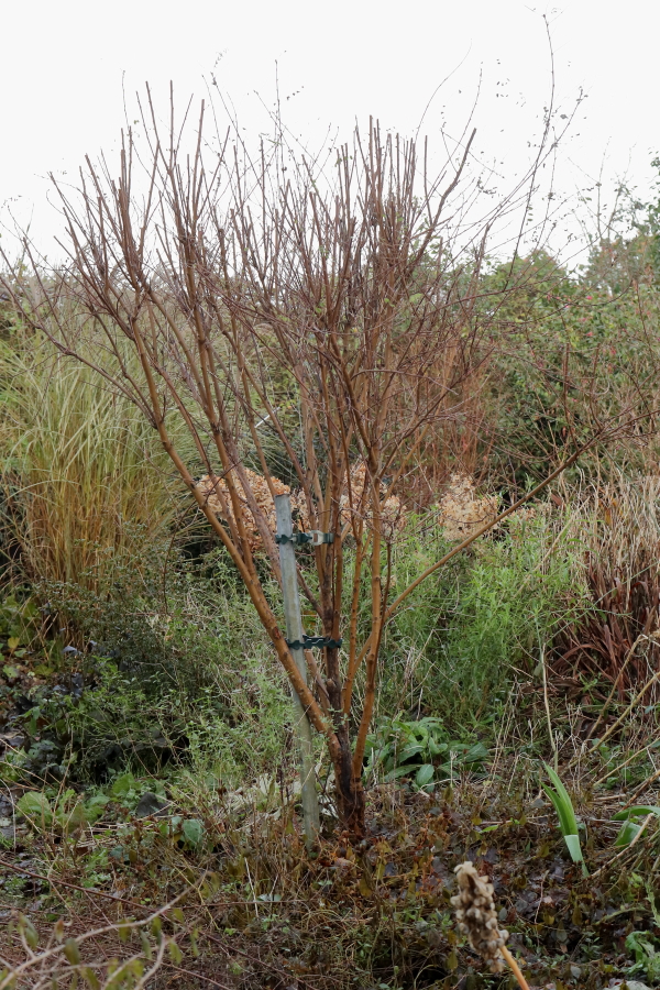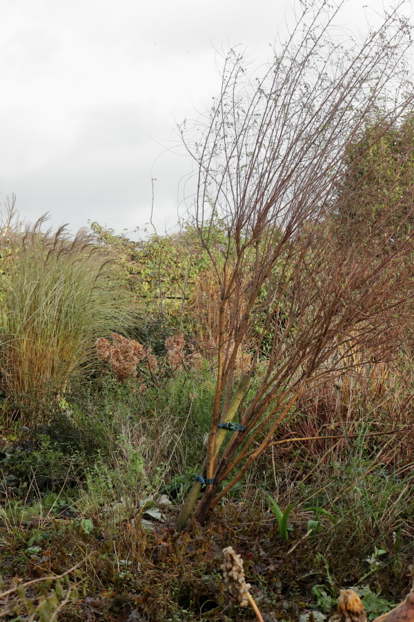 What I went out this morning to do was to tie up my Indigofera pendula, which had made a lot of top growth which meant it caught too much wind, snapped its stake and ended up at a jaunty angle. It now has an ugly metal pole which I will attempt to disguise, but at least it should get through the winter. I cut it down too.