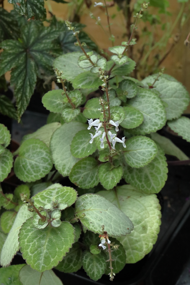 Another plant I took a fancy to at some plant fair or other was one bearing the name Plectranthus oerphendelii. Not for the first time, putting it in a Saturday six has prompted me to look it up. The Plectranthus bit is right. The species is oertendahlii, so close. Most of what comes up is other species of Plectranthus so it seemingly isn’t very common. I had it in mind for a container plant outside in summer, it has attractively silvered leaves. It remains to be seen whether starting to flower in late November is its usual behaviour. Like the Primulina, it’s in the greenhouse with just frost protection and seems perfectly happy so far.