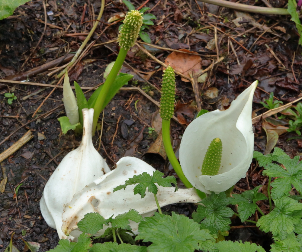 Lysichiton camtschatcensis still comes up where our pond used to be when it was planted. We’ve never tried to get rid of it but it has suffered from acute benign neglect for many years. It isn’t the thug that it’s yellow cousin often is.