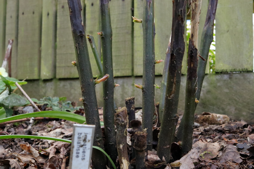 I bought Impatiens balansae at Tregrehan rare plant fair some years back, where Tom Hudson was growing it in a north facing greenhouse. I planted mine in the garden and it has survived under the protection of a layer of leaves but has had to start growing from ground level in spring. It has then started flowering in November. This year the layer of leaves was deeper and we’ve had less frost; new growth is appearing several inches up last year’s stems. Maybe it will start to flower in October this year. Nick Macer is calling this Impatiens aff. apalophylla, having decided balensae was wrong.