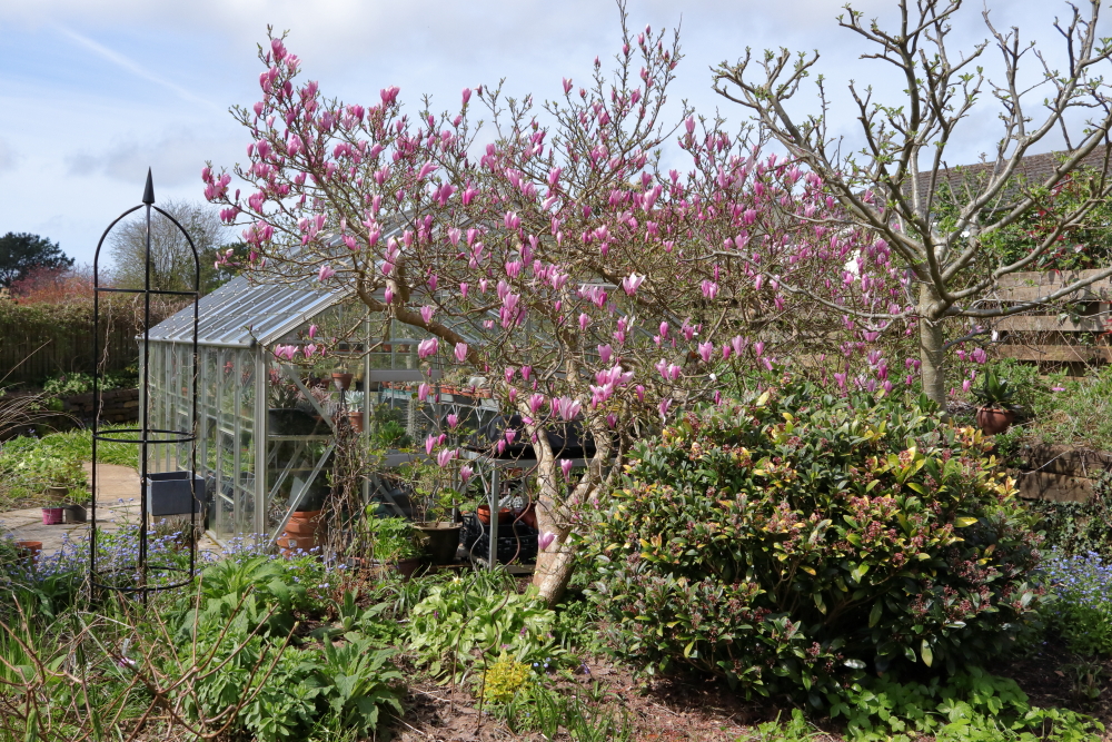 Magnolia ‘Ann’ is probably about at its best now. It was supposed to be an upright grower but had other ideas, so it gets bits chopped off every year to keep it in check.