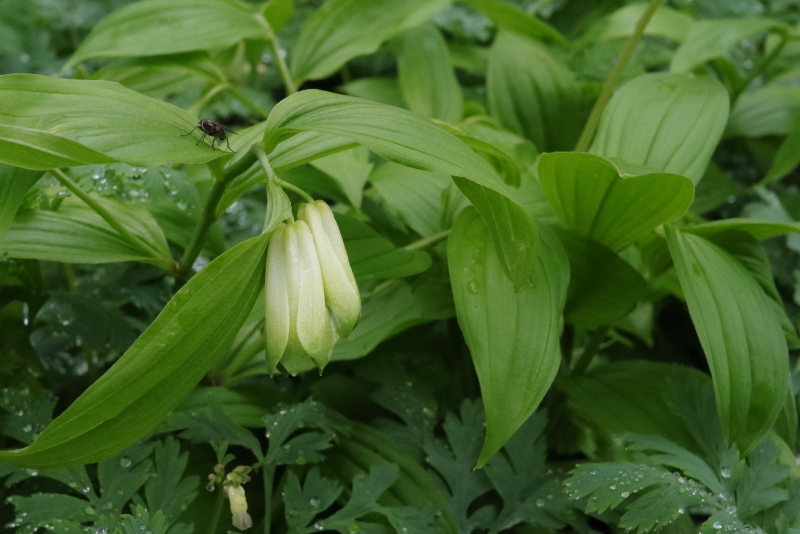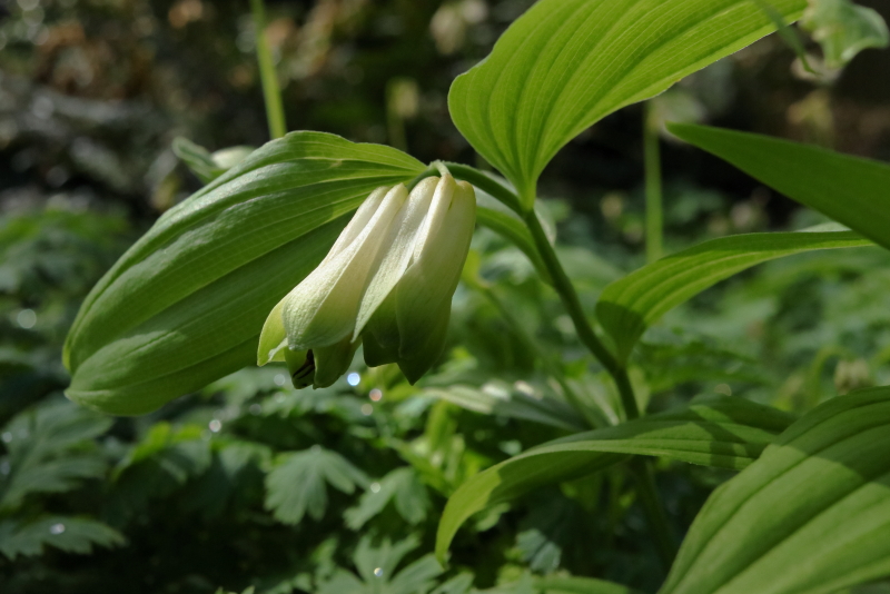 Disporum sessile macrophyllum manages to hold its own against the onslaught of Dicentra, but only just. When I first bought it and had it growing in a pot in a polytunnel, it was probably nearly three feet tall. In the ground, in competition with other plants, it’s about a foot tall.