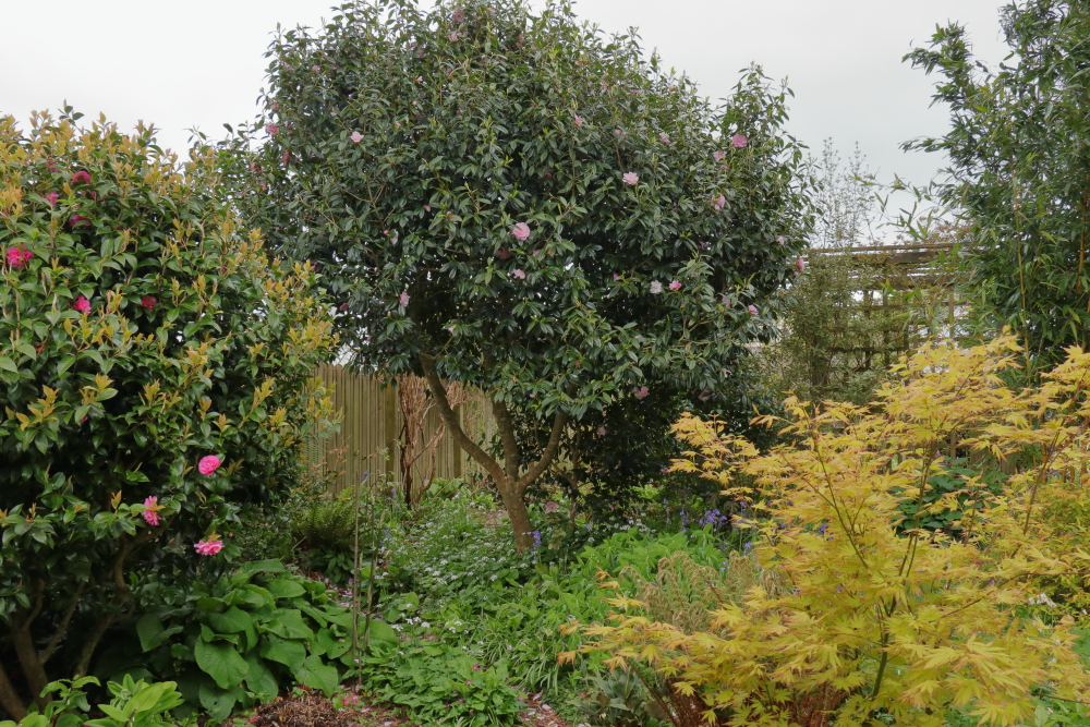 Goodness, I have difficulty keeping Camellia japonica down where the flowers are visible. Only a few are pruned up as small trees. Some were so overgrown that we cut them to the ground. Most regenerate from their stumps, but those that did not were no major loss, since leaving their overgrown or disfigured grown was not a practical option.