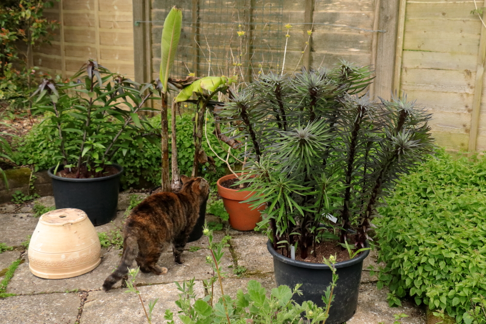 They are months away from flowering but I brought the main pot out of the tunnel before it got too tall, wanting to get good strong stems. The foliage is beautiful, it would be worth growing even if it didn’t have flowers, but it does, and they’re stunning too.
