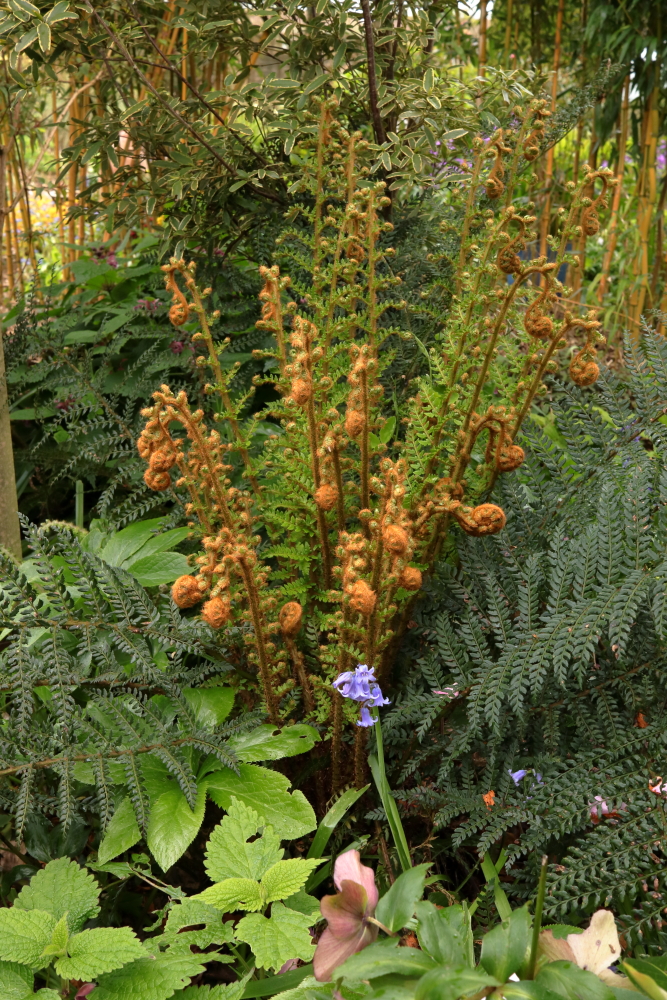 Fern of the week is Dryopteris prolifera. It’s pretty much a standard fern except that it does it exceptionally well. Darker than average fronds give it gravitas and being evergreen, set off the new fronds particularly well. Then it produces a plantlet at the tip of each frond, which slowly sink until they touch the ground and root, so you get a supply but not an avalanche of new plants.