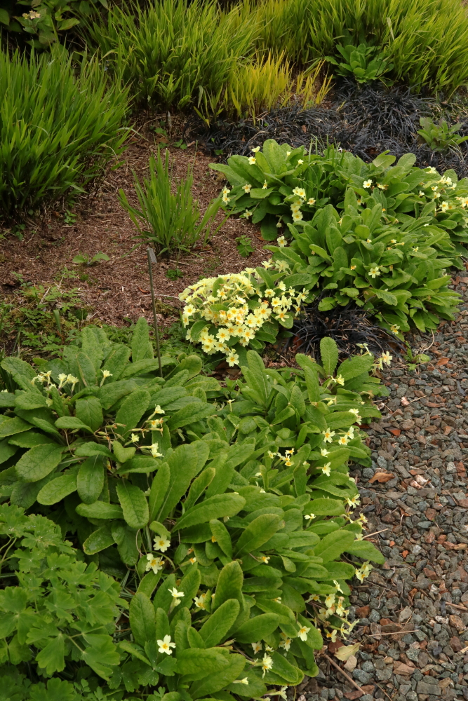 Most of the primroses look as though they’ve put their efforts into growing bigger instead of producing flowers, it’s very odd that only one is flowering so profusely,