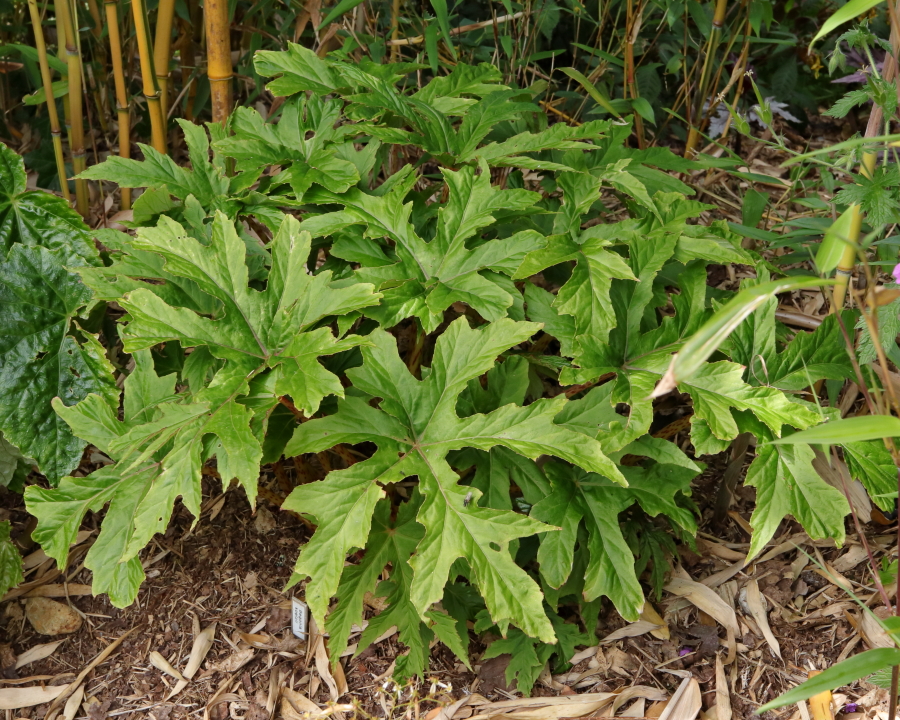 It is clear that this is a big, fast spreading plant that will be happiest in boggy ground. Even though it has been a relatively wet season, I have had to water it a couple of times when it has wilted. If it has flowered this year it has done so out of sight beneath its leaf canopy and knowing that the flowers are unspectacular, white, smallish and not carried in great numbers, I have not been motivated to look. (I looked, there are almost open buds)