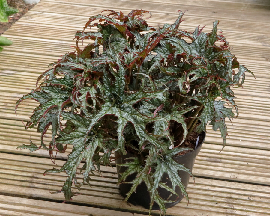 Farmyard Nurseries list four forms of B. palmata, including ‘Tie Dye’, and they are very different from each other. The International Database of the Begoniaceae lists a ‘Tie Dye’ but it is a completely different cultivar. Confusion reigns.