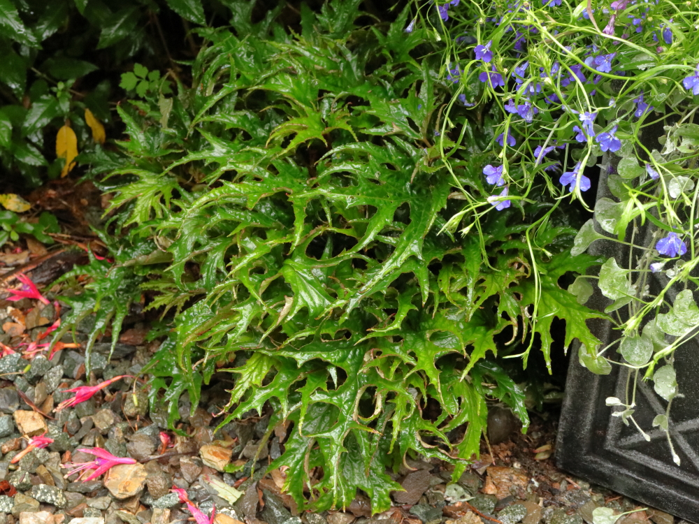 As it turned out, I’d missed a bit when I first rescued it and that small piece is still there, having been left in the ground, unprotected, through all the subsequent winters. It is still only as big as the original plant had been when planted; it dies down for winter, comes up very late, in June, and barely makes enough growth to get back to the size it was the previous year before winter sends it back into hibernation.