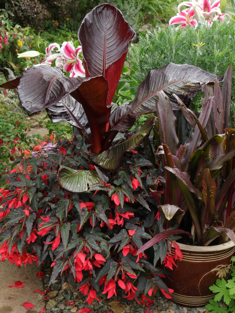 There’s something about the quality of bedding begonia colour that makes them jar in a lot of situations, it’s very intense perhaps? We have a pot of red pendulous begonias in a prominent position and they don’t look quite right, but I don’t think a different colour would solve the issue.