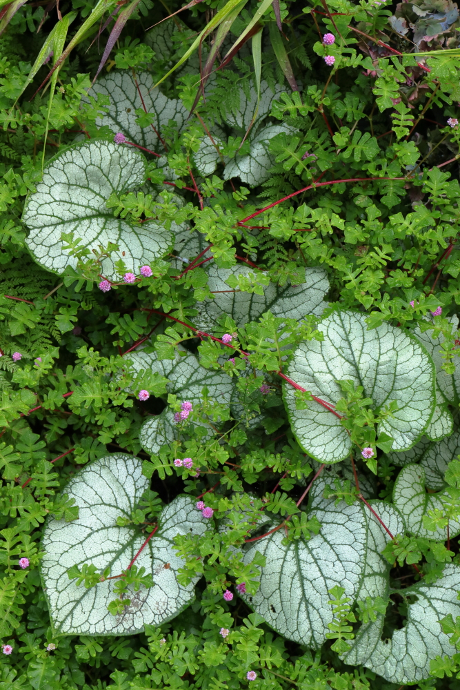 As lovely as a single plant can be, there’s nothing gives me more pleasure than a grouping of plants combining to perfection, especially when as here, they merge into each other as equal parts of a tapestry. Brunnera ‘Jack Frost’, Edward Needham’s collection of Persicaria sinuata, a little of the fern Paesia scaberula and a fringe on top of Hakonechloa macra.