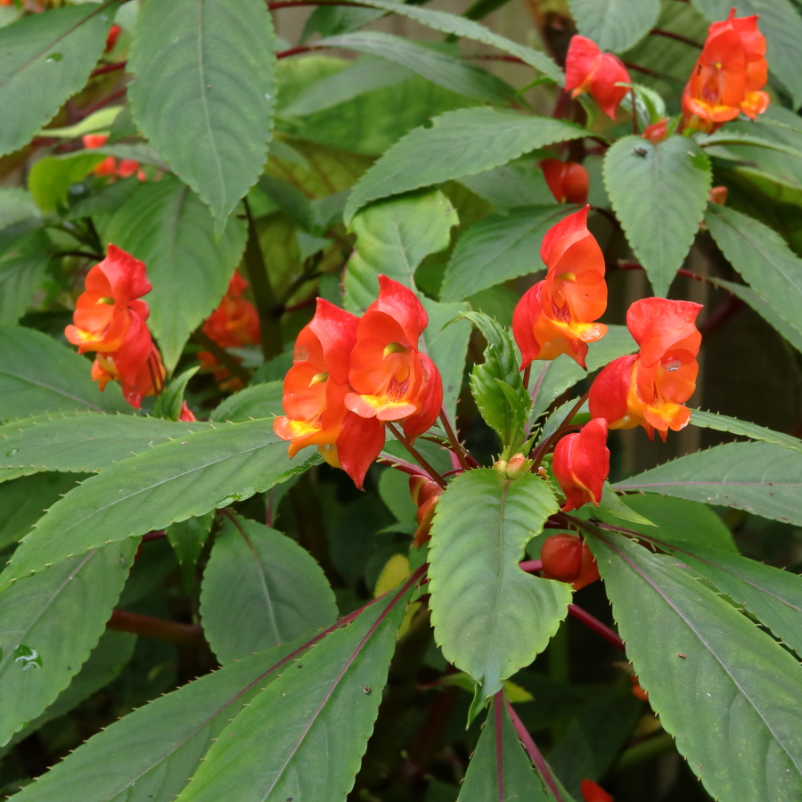Impatiens auricoma x bicaudata is an odd one. I had to look it up but found that it is not what I thought it was. A few of the genus are sometimes seen in coastal gardens. If someone finds one that performs well, it gets shared with neighbors. Because of the climate, I notice more there than in the Santa Clara Valley.