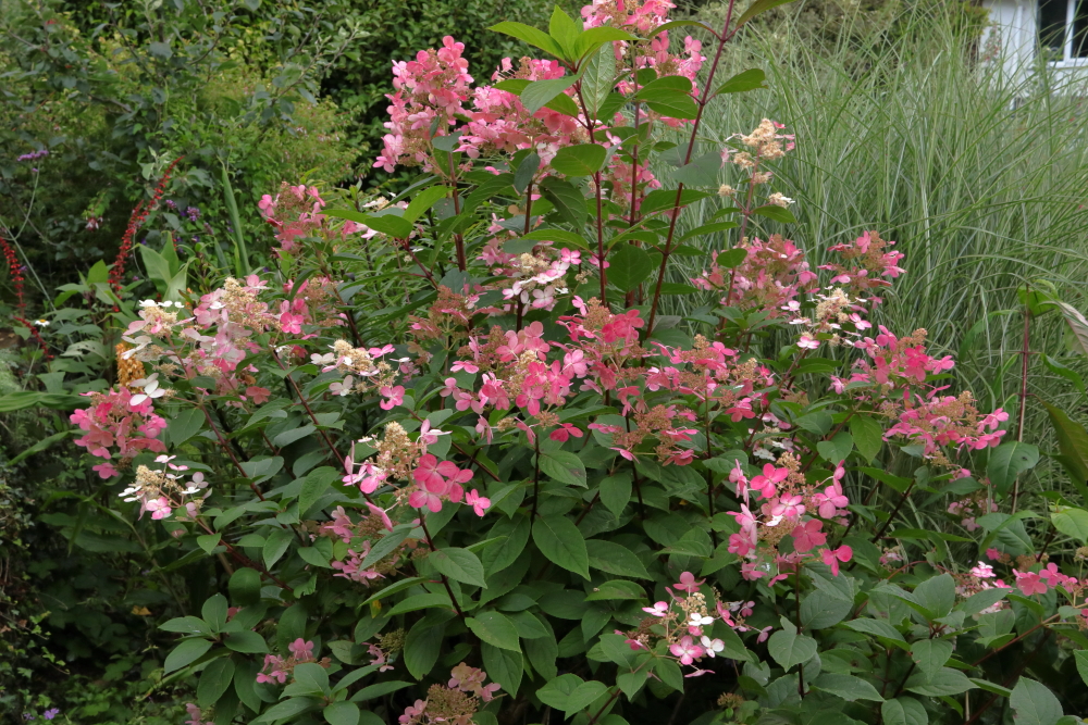 Hydrangea paniculata ‘Early Sensation’ is a bit of a puzzle. It’s no earlier than the other two H. paniculatas I grow and compared to many, perhaps most, of the varieties that have come along in the last twenty years, it isn’t sensational at all. Which is not to say that it’s no good at all, and it’s at the back of a border where arguably a better variety might be wasted. Perhaps the name is wrong.